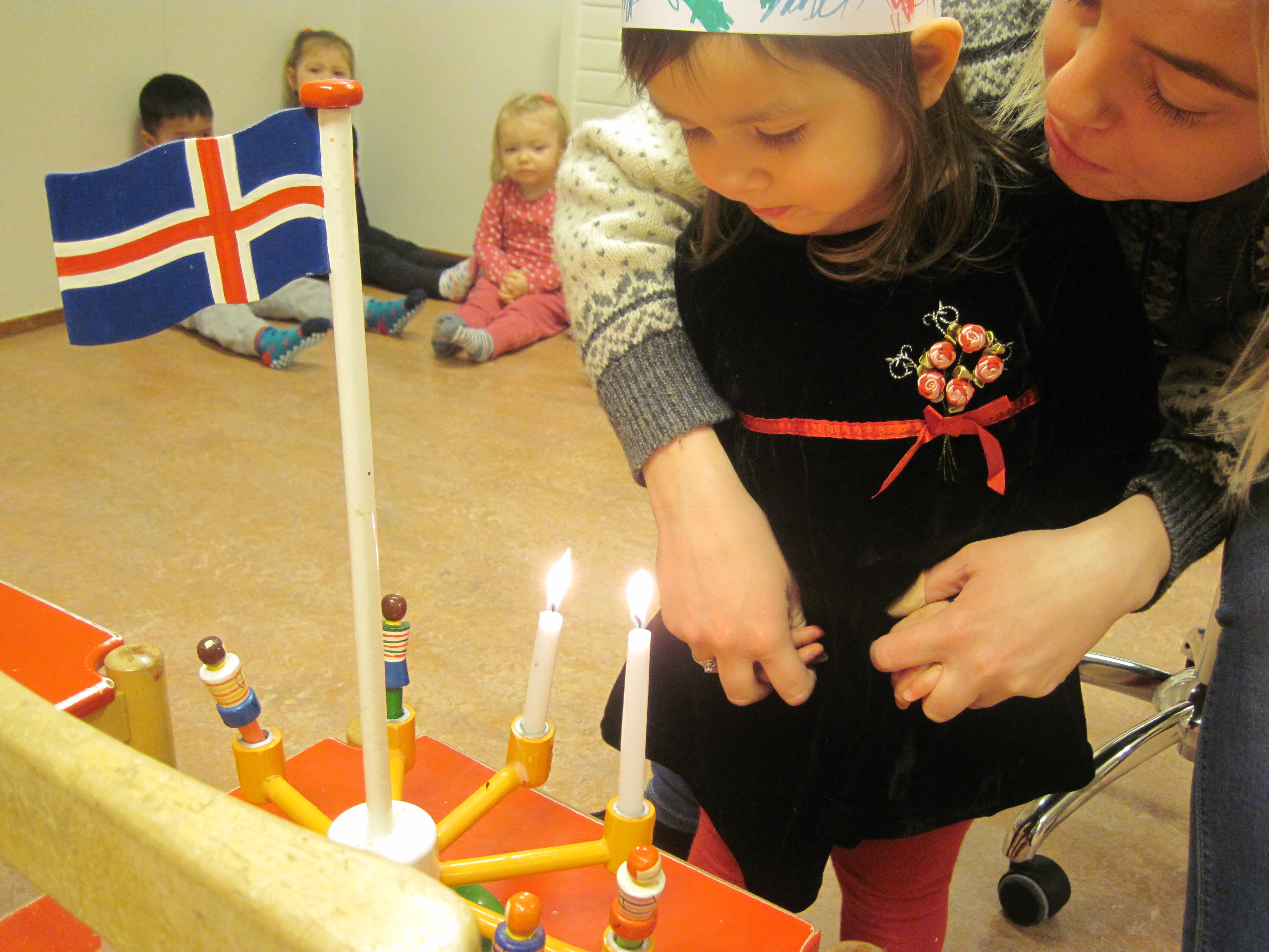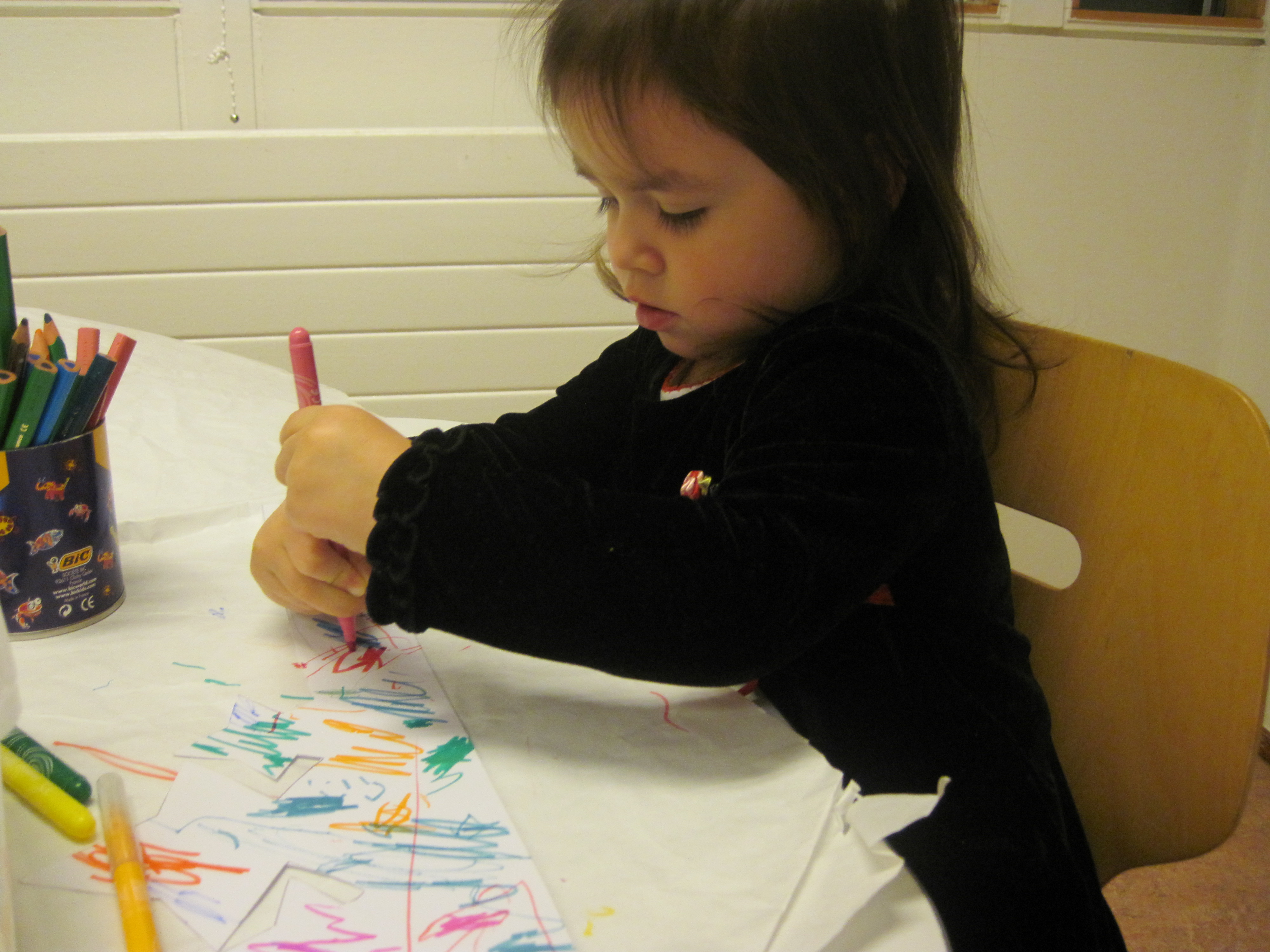 Í dag 28. desember varð Adriana Maria 2 ára og af því tilefni héldum við upp á afmælið hennar hér í Krílakoti í dag. Adriana málaði á kórónuna sína. Eftir sönginn fengu allir sér ávexti úr ávaxtakörfunni. Við óskum Adriönu Mariu og fjölskyldu hennar innilega til hamingju með daginn. Kveðja frá öllum í Krílakoti