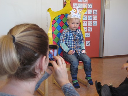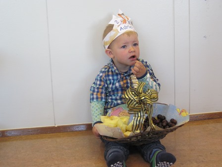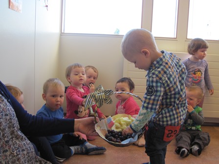 Í ávaxtastundinni sungum við fyrir hann afmælissönginn, hann hefur stækkað í nótt og þetta er afmæliskveðja.