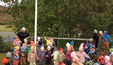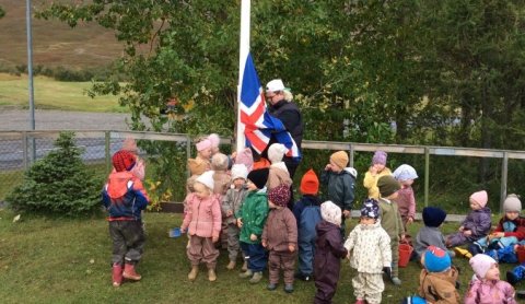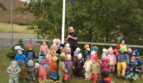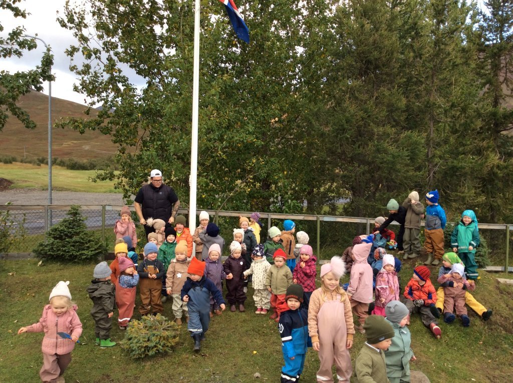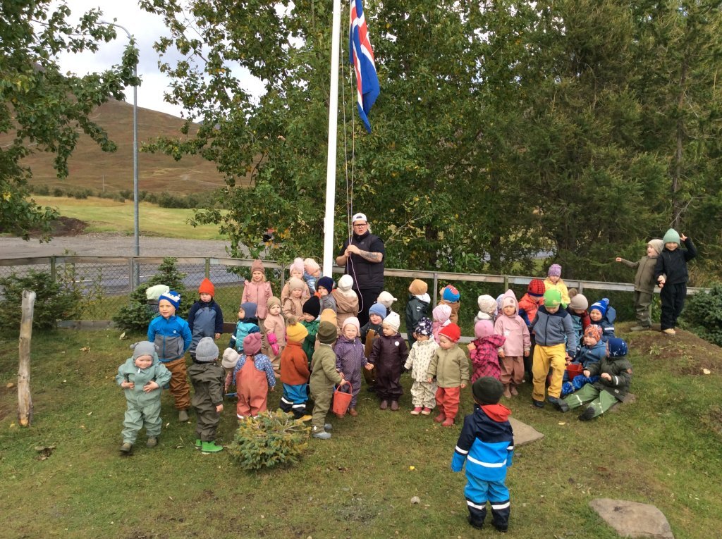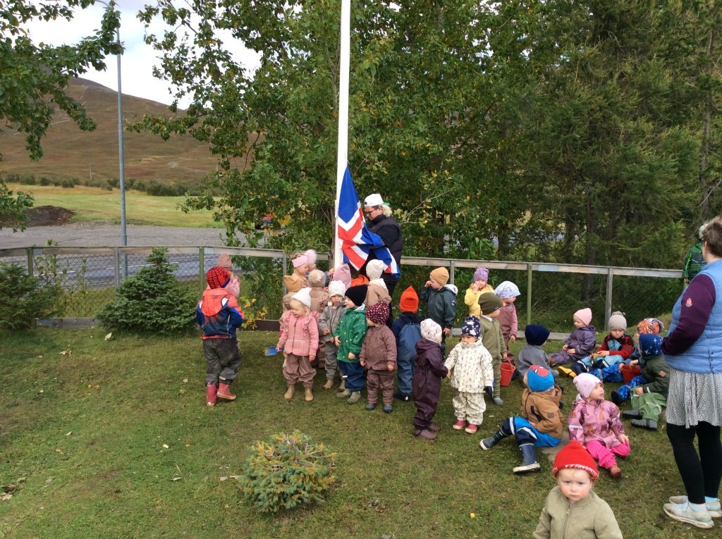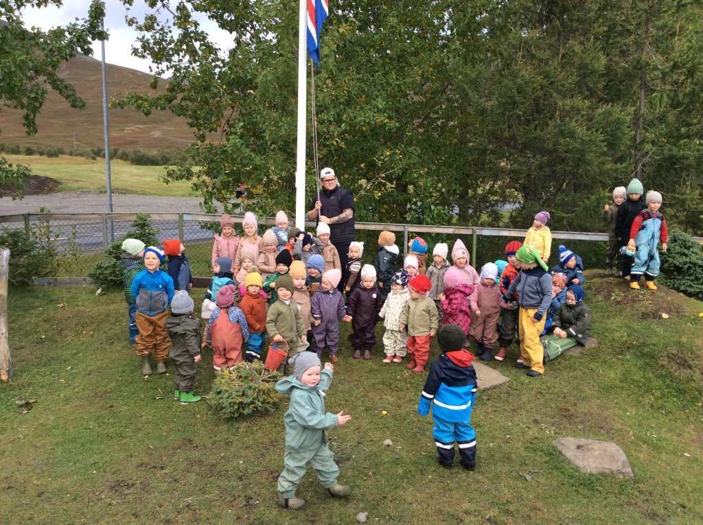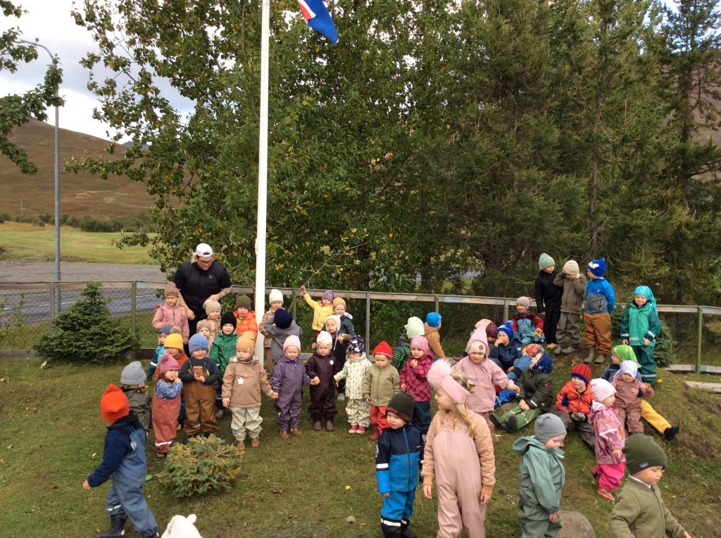 þann 9. september verður leikskólinn Krílakot 43 ára og héldum við upp á daginn í dag. Í ávaxtastund fengu nemendur skúffuköku sem vakti mikla gleði hjá nemendum og í útiveru var flaggað og sungið í tilefni dagsins.