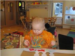 Í ávaxtastundinni sungum við fyrir hann afmælissönginn, hann hefur stækkað í nótt og þetta er afmæliskveðja.