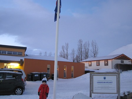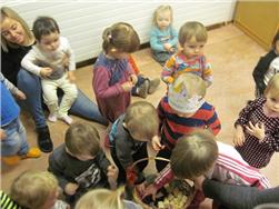 Í ávaxtastundinni sungum við fyrir hann afmælissönginn, hann hefur stækkað í nótt og þetta er afmæliskveðja.