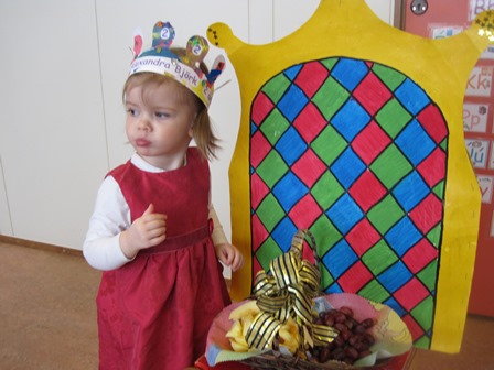 og bauð svo öllum á Skakkalandi upp á ávexti úr afmæliskörfunni.