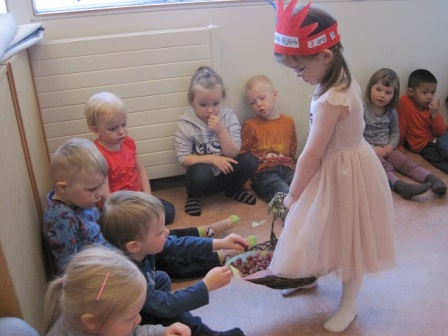 Eftir sönginn fengu sér allir ávexti úr ávaxtakörfunni.
