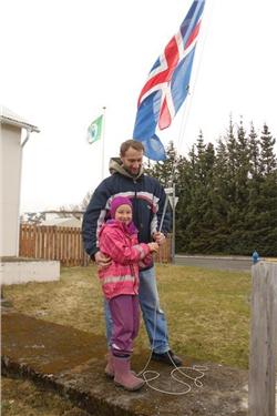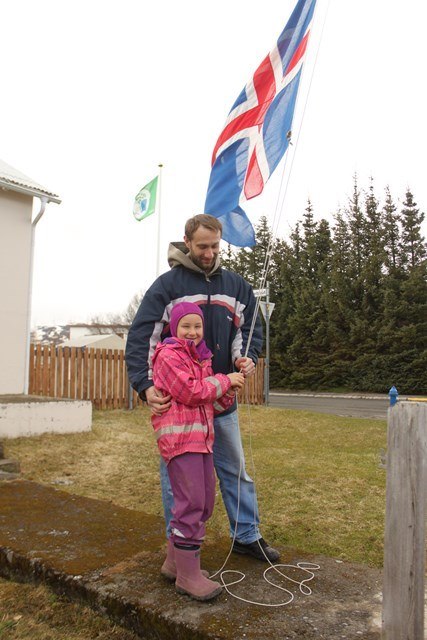 Einnig fór hún út og flaggaði íslenska fánanum í tilefni dagsins.