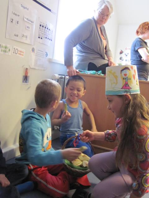 og bauð svo öllum í Sólkoti upp á ávexti úr afmæliskörfunni.