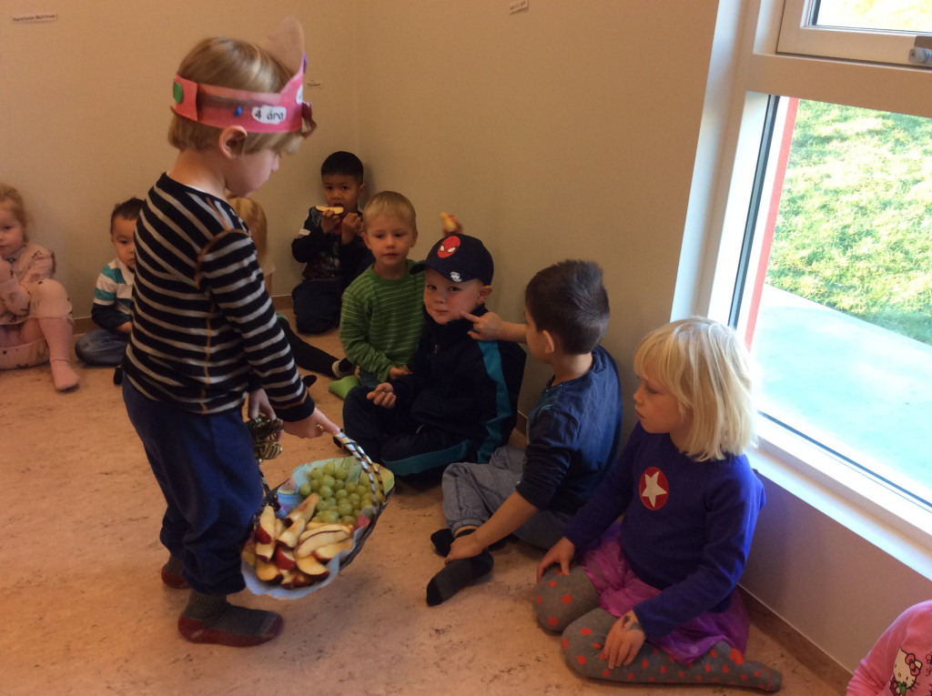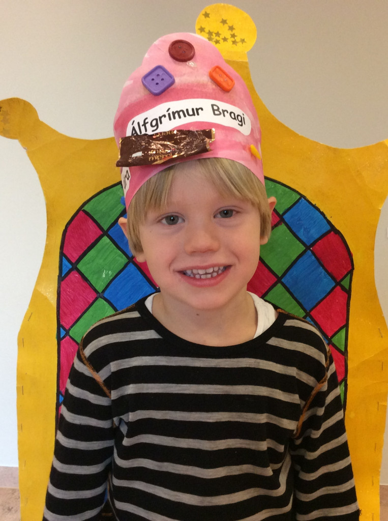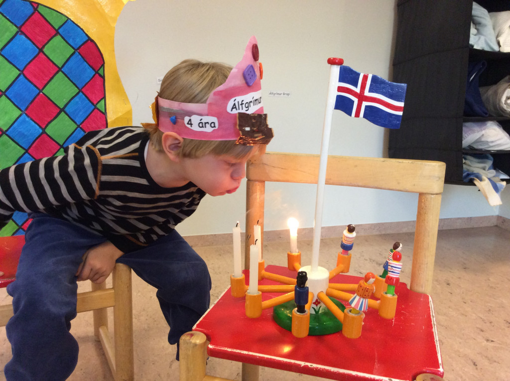 Þann 30. október verður hann Álfgrímur Bragi 4 ára og héldum við upp á daginn hans hér í Krílakoti í dag. Álfgrímur Bragi bjó sér til glæsilega kórónu, bauð upp á ávexti úr afmæliskörfunni, flaggaði íslenska fánanum og svo sungum við fyrir hann afmælissönginn.