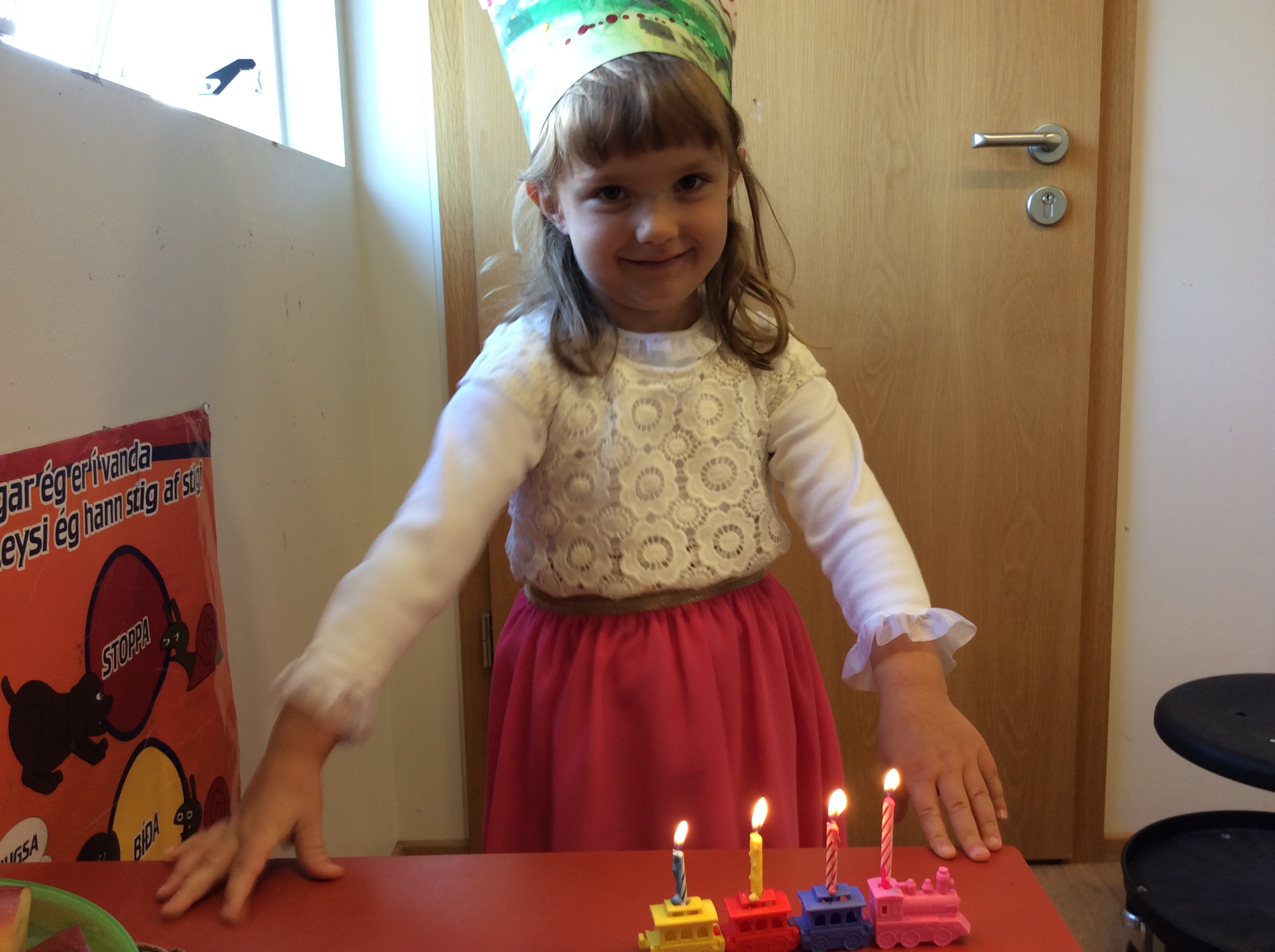 Amelia Stanislawa bjó sér til fallega kórónu, blés á kertin 4 og