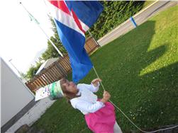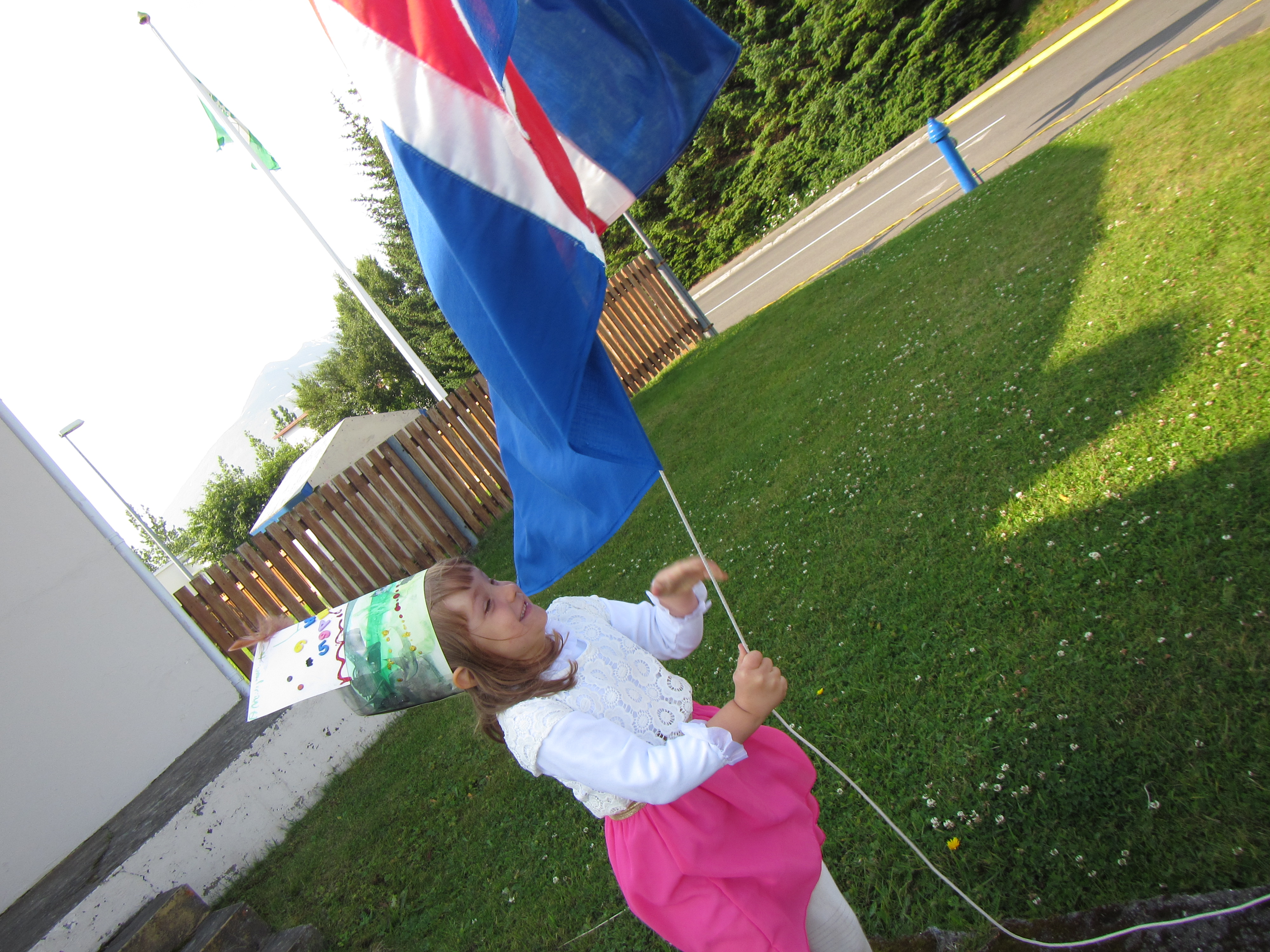 Að því loknu fór hún út og flaggaði fánanum í tilefni dagsins.