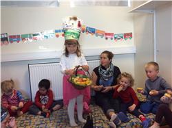 bauð svo öllum í Mánakoti upp á ávexti úr afmæliskörfunni.
