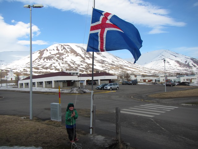 Einnig fór hann út og flaggaði íslenska fánanum í tilefni dagsins.