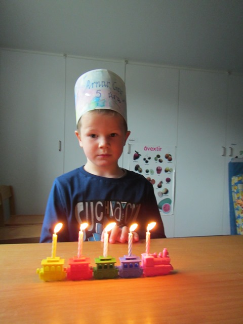 Í ávaxtastundinni sungum við fyrir hann afmælissönginn og eftir