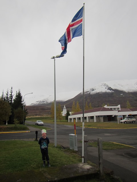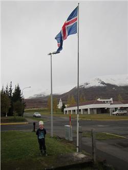 Arnar Geir málaði á kórónuna sína og við flögguðum íslenska fánanum honum til heiðurs.