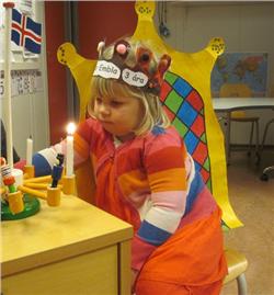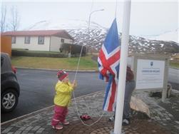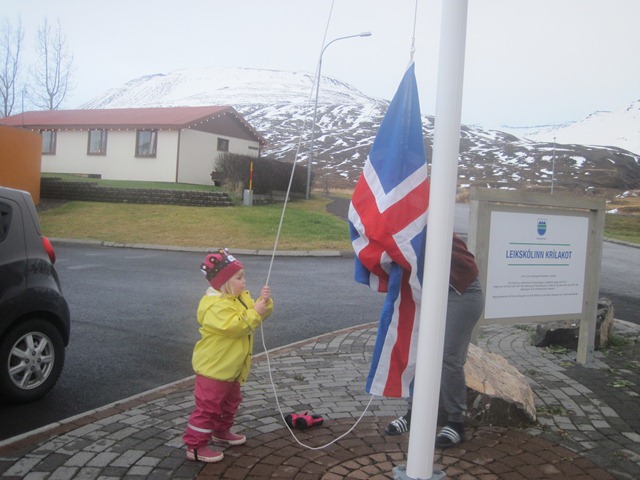Auður Embla málaði á kórónuna sína og við flögguðum íslenska fánanum henni til heiðurs.