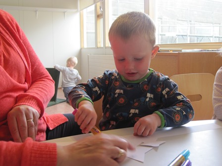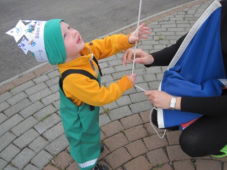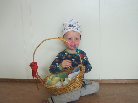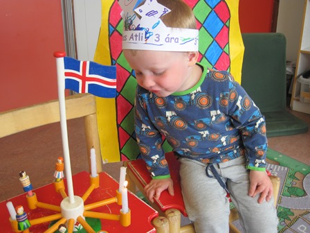 Í ávaxtastundinni sungum við fyrir hann afmælissönginn, hann hefur stækkað í nótt og þetta er afmæliskveðja.