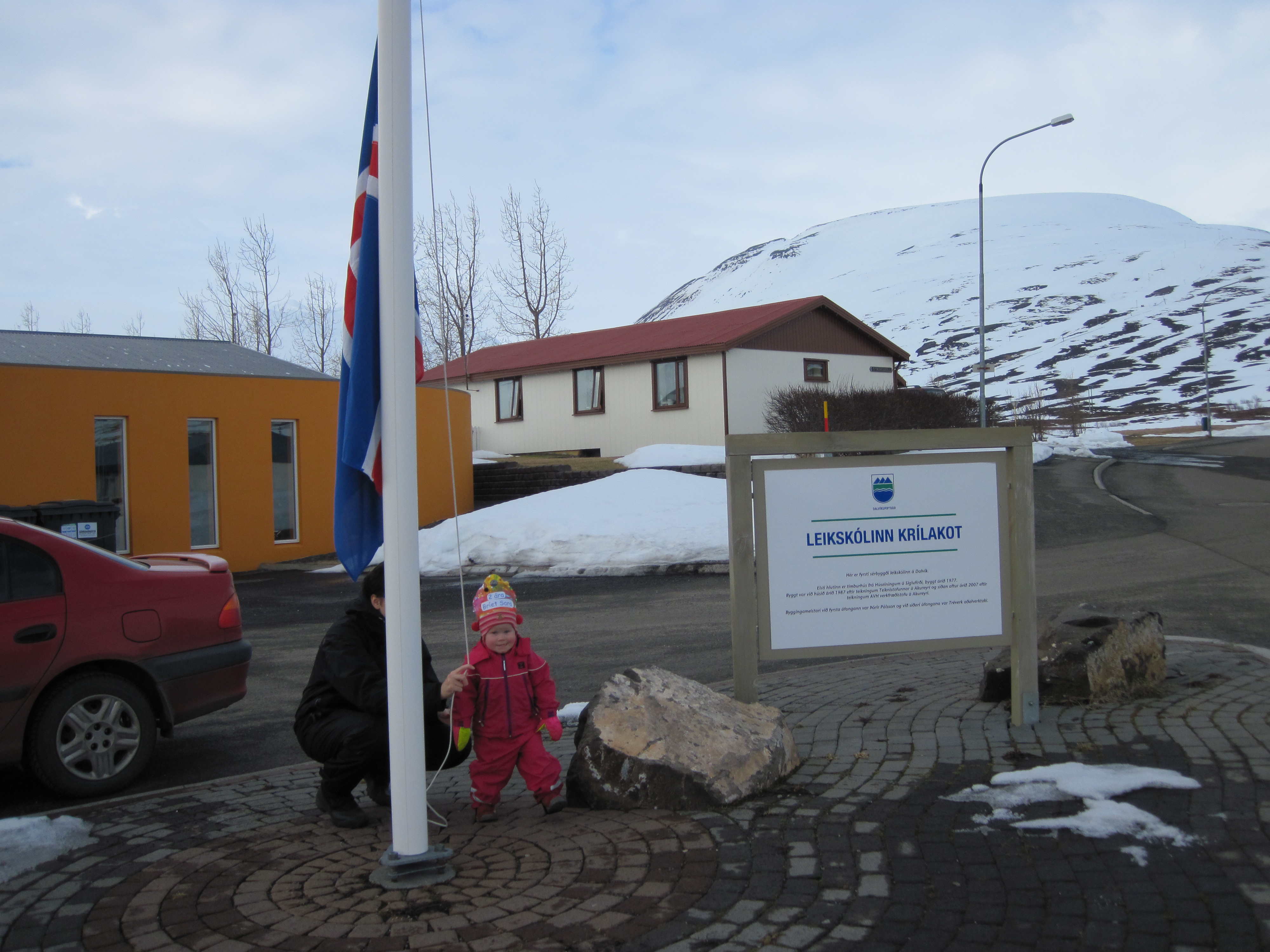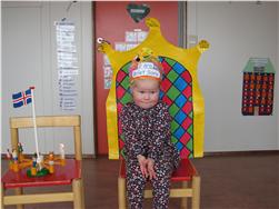 Bríet Sara málaði á kórónuna sína og flögguðum íslenska fánanum henni til heiðurs.
