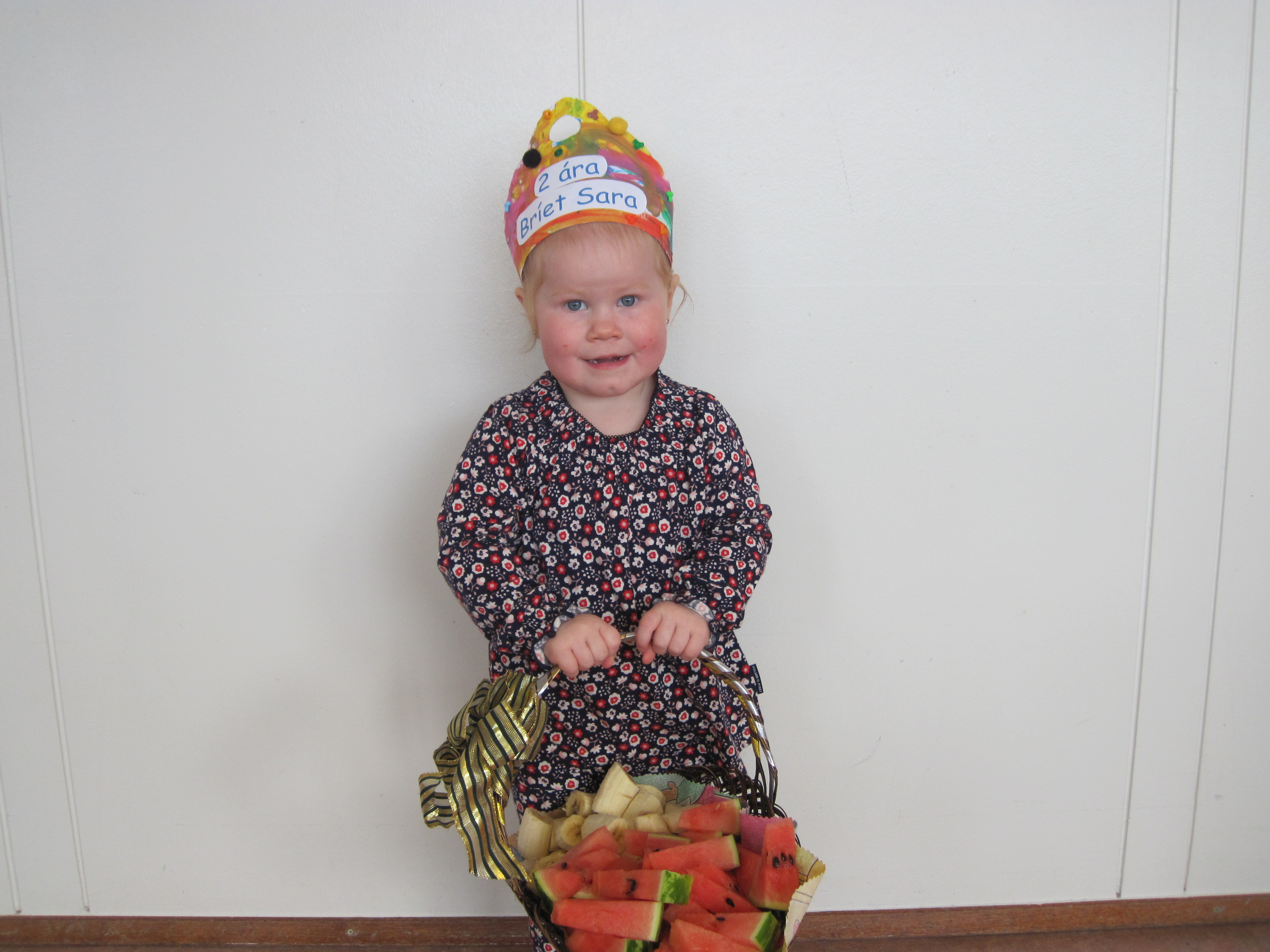 Í ávaxtastundinni sungum við fyrir hana afmælissönginn og eftir