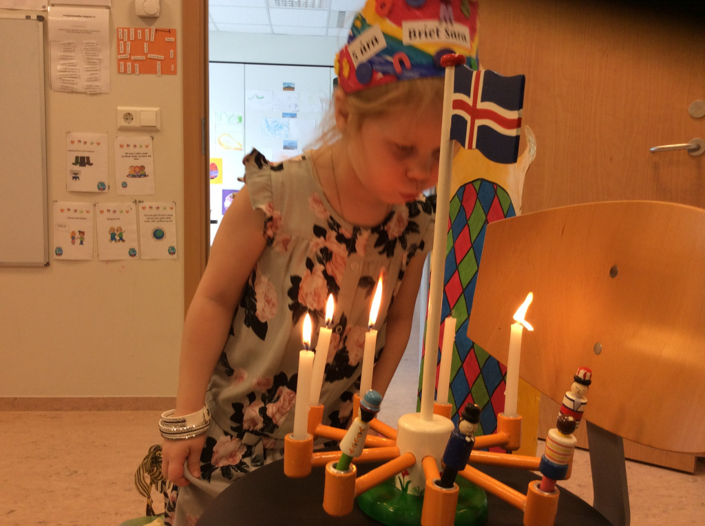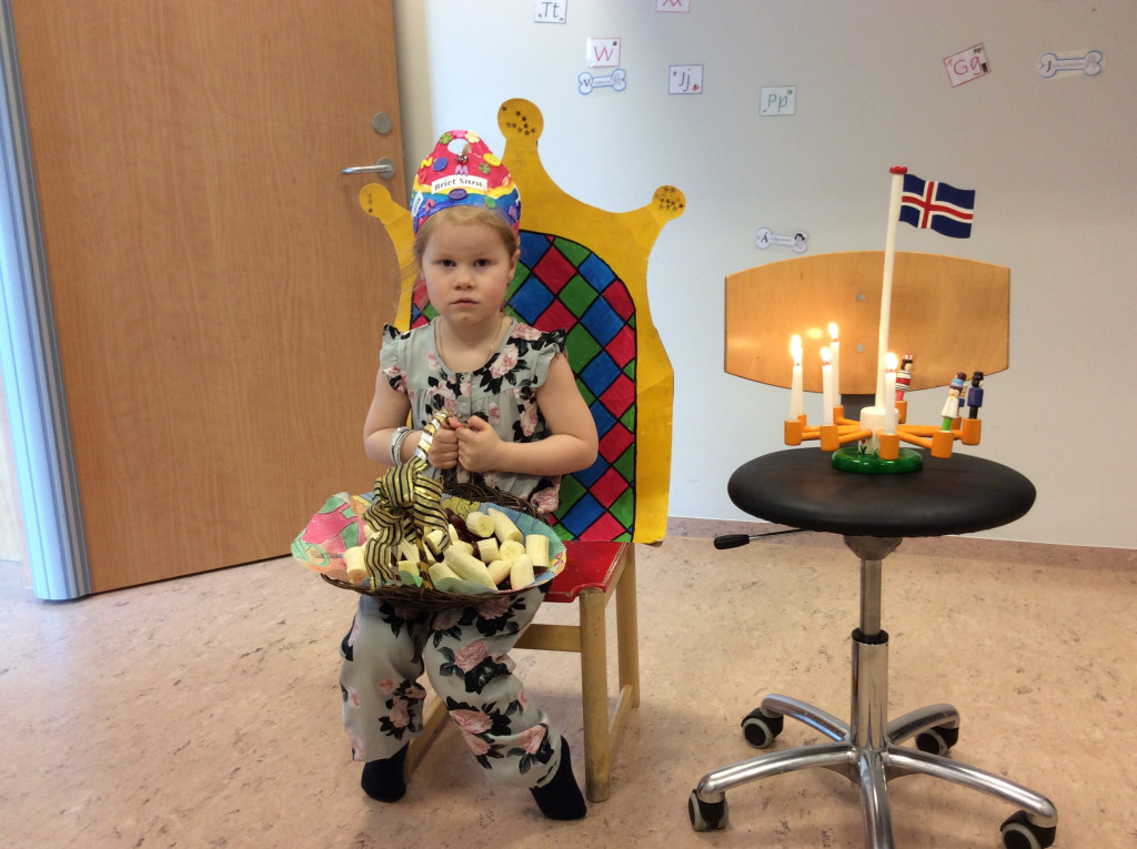 Í dag héldum við upp á 5 ára afmælið hennar Bríetar Söru. Í tilefni dagsins bjó hún til kórónu sem hún bar, bauð upp á ávexti í ávaxtastundinni, var umsjónarmaður, flaggaði íslenska fánanum og svo var afmælissöngurinn sunginn fyrir hana. Við óskum Bríeti Söru og fjölskyldu hennar innilega til hamingju með daginn.