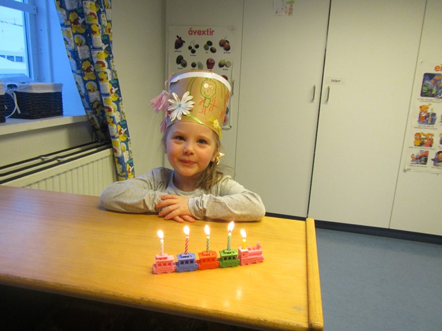 Bríet Þóra bjó sér til fallega kórónu, blés á kertin 5 og