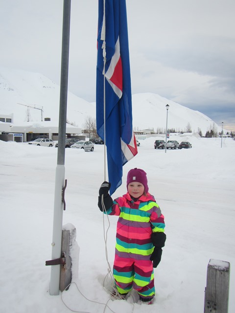 Að því loknu fór hún út og flaggaði fánanum í tilefni dagsins.