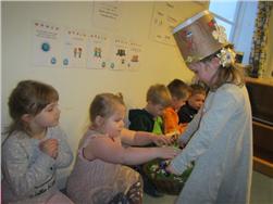 bauð svo öllum í Mánakoti upp á ávexti úr afmæliskörfunni.
