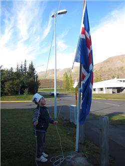 Að því loknu fór hann út og flaggaði fánanum í tilefni dagsins.
