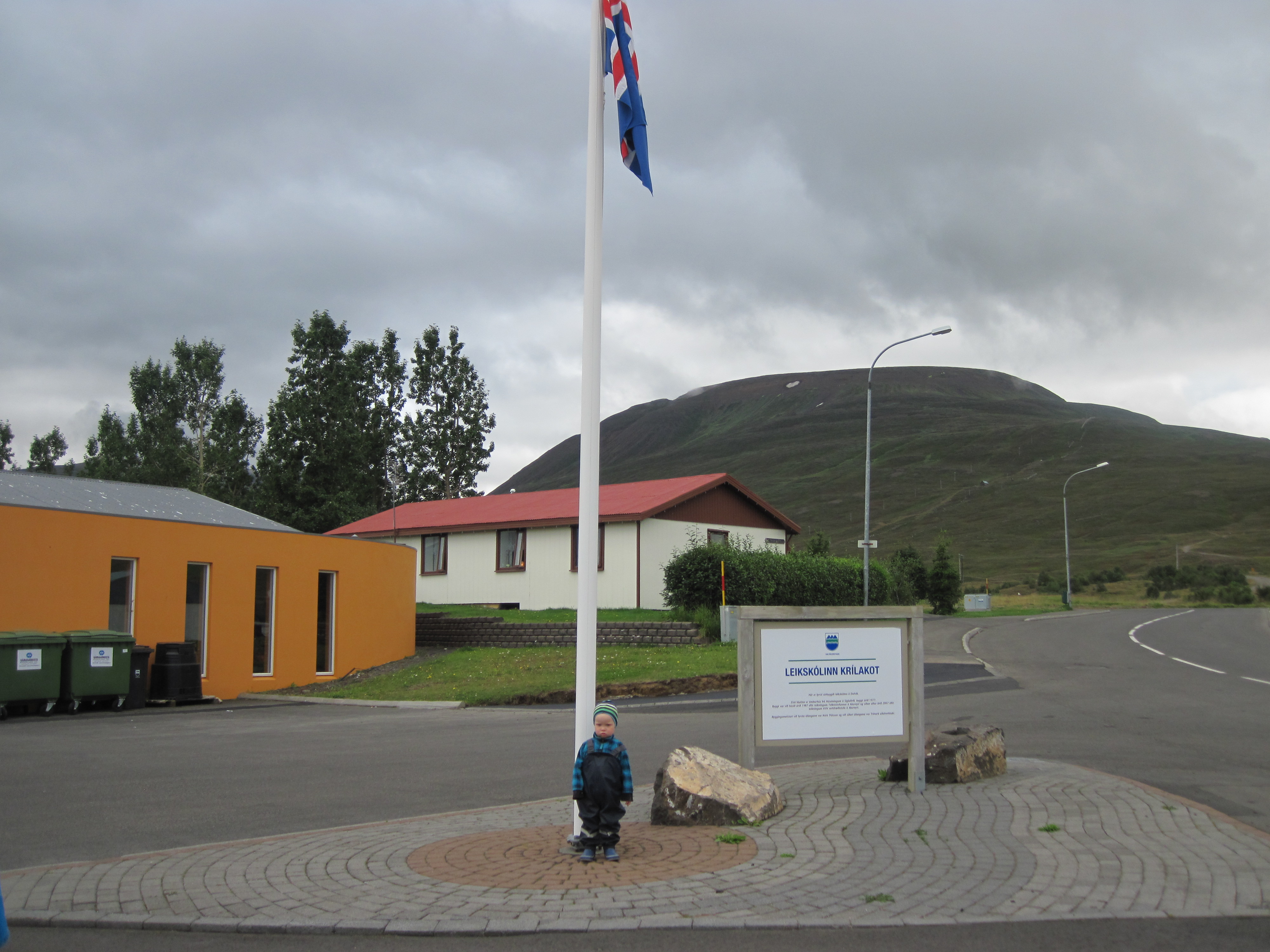 Dagur Gísli málaði á flottu kórónuna sína og flaggði íslenska fánanum í tilefni dagsins.