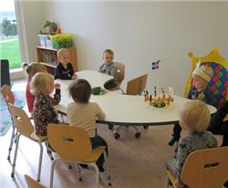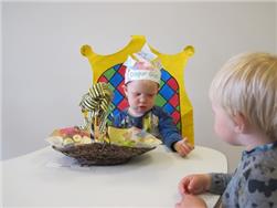 Í ávaxtastundinni sungum við fyrir hann afmælissönginn, hann hefur stækkað í nótt og þetta er afmæliskveðja.