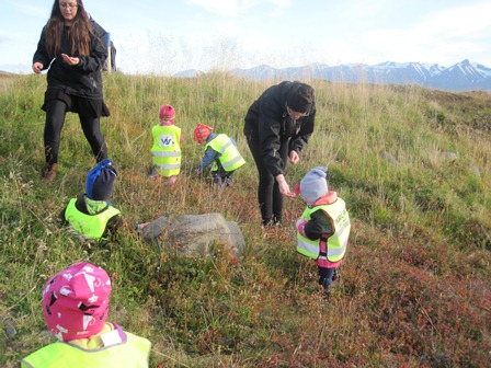 Við skoðuðum umhverfið í leiðinni og gæddum okkur á ávöxtum sem við höfðum með okkur og smökkuðum auðvitað bláber og krækiber sem á vegi okkar urðu. Einhverjir svipuðust um eftir kindum, hestum og öðrum dýrum en við urðum einskis vör í þessari ferð.