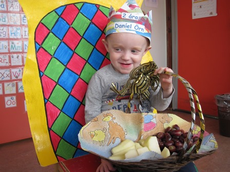 Daníel Örn bjó sér til þessa fallegu kórónu, blés á kertin 2
