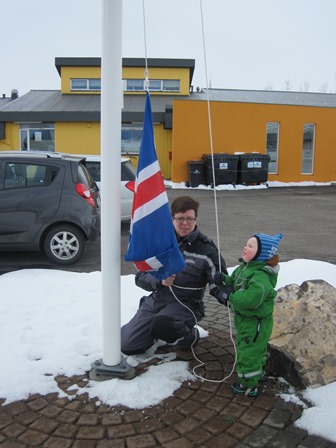 Einnig fór hann út og flaggaði íslenska fánanum í tilefni dagsins.