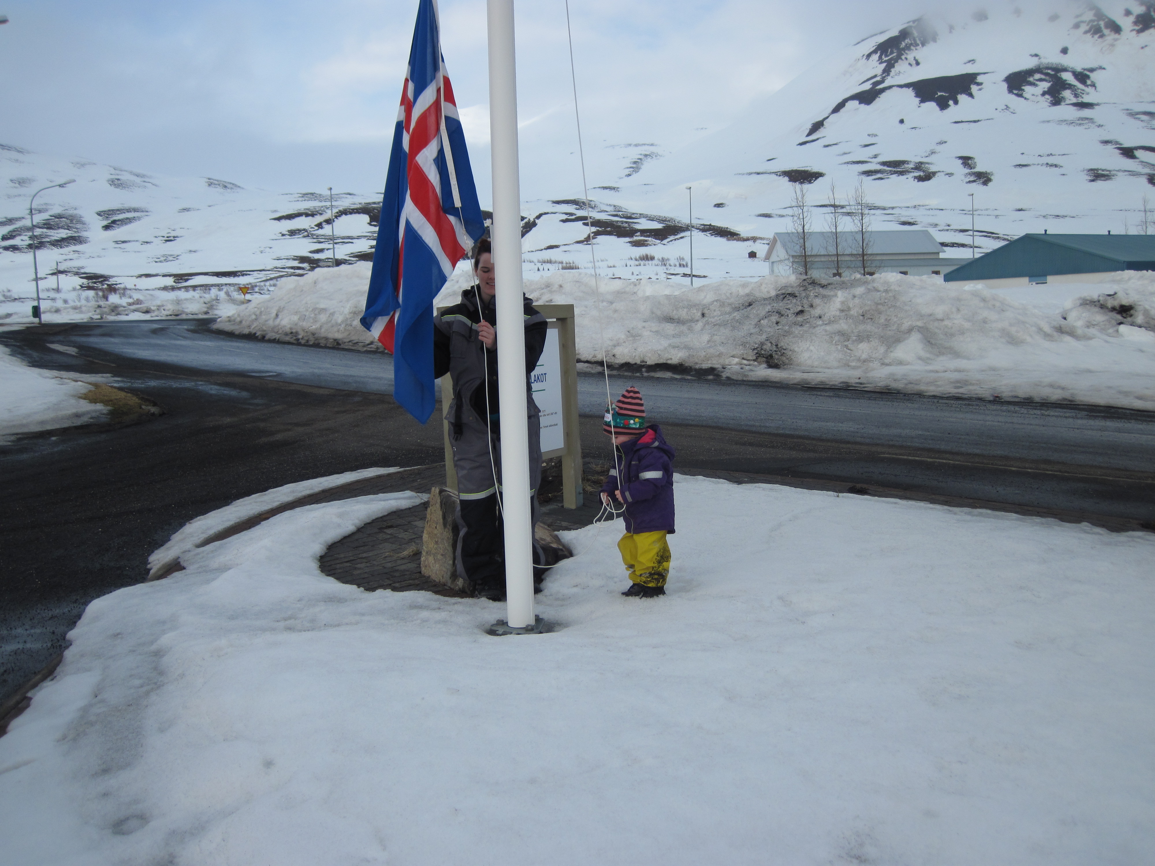 Eyrún Hekla málaði sér kórónu og flaggaði íslenska fánanum.