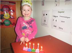 Eyrún Hekla bjó sér til þessa fallegu kórónu, blés á kertin 5