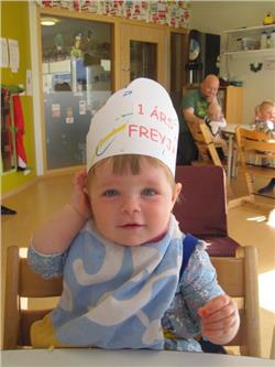 Freyja bjó til fallega kórónu. Í ávaxtastundinni sungum við fyrir hana afmælissönginn,