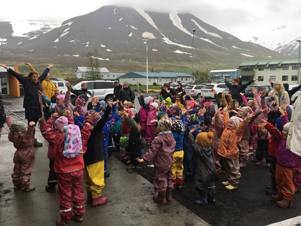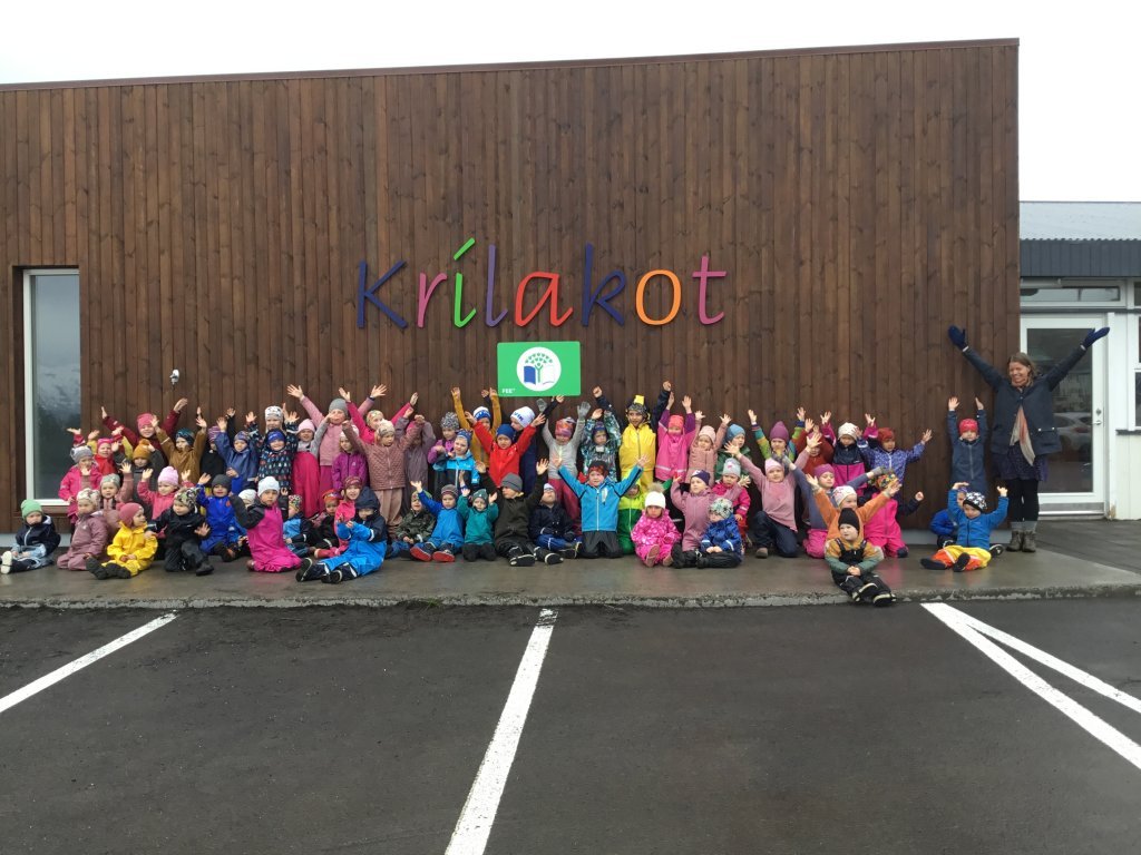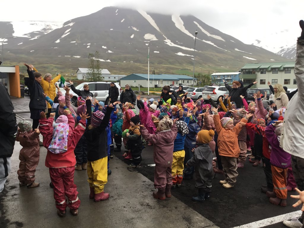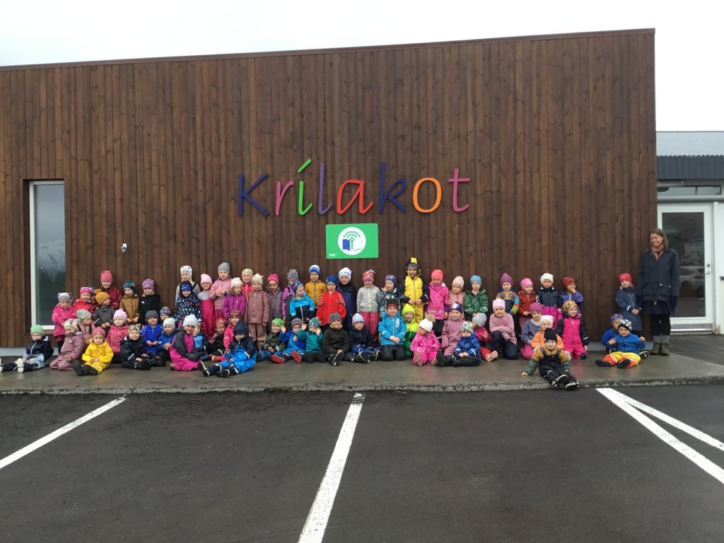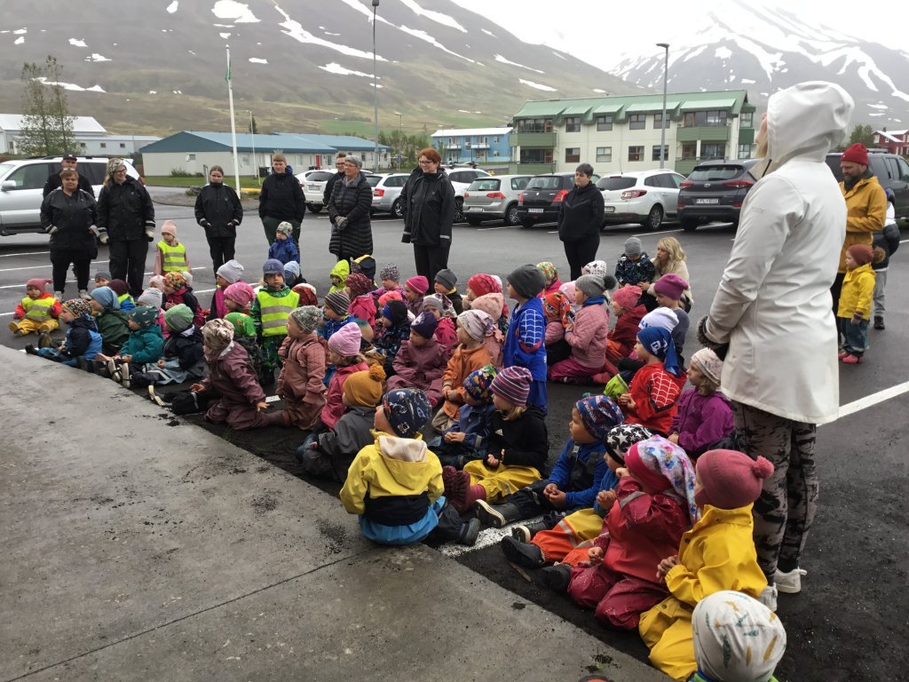 Í dag flögguðum við nýjum Grænfána en það er í fimmta skipti sem honum er flaggað. Áttum saman hátíðlega stund úti á bílaplani leikskólans. Sett var upp skilti með merki Grænfánans og Katrín frá landvernd ræddi við börnin um mikilvægi þess að ganga vel um jörðina.