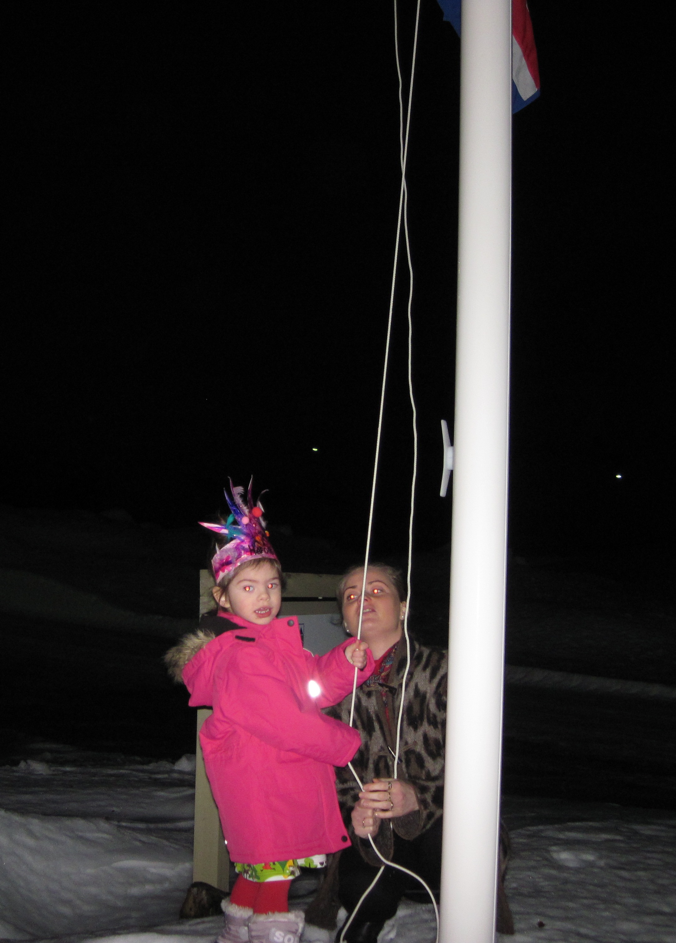 Hafdís Nína málaði sér kórónu og flaggaði íslenska fánanum.