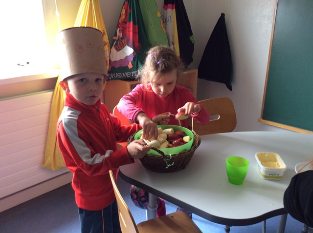 blés á kertin 6, og svo bauð hann öllum upp á ávexti í hádeginu.