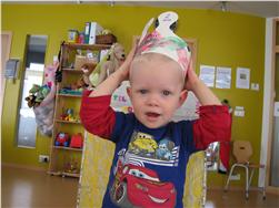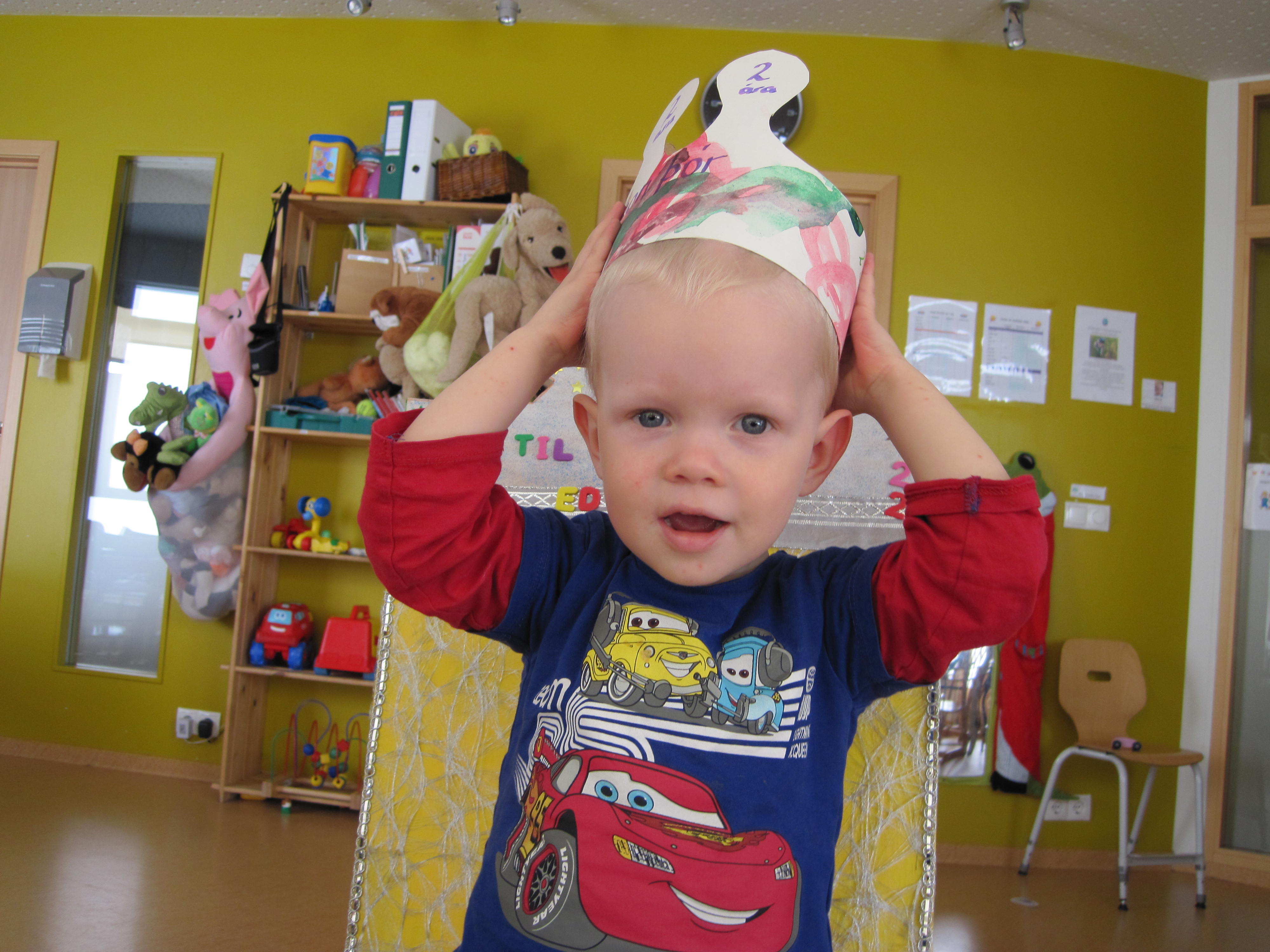 Hákon Þór málaði sér kórónu og flögguðum við fyrir hann í tilefni dagsins.