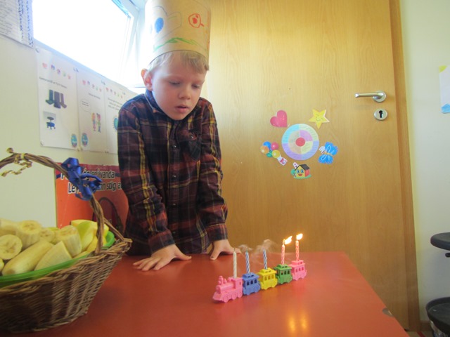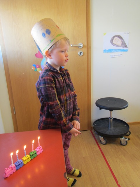 Hákon Þór bjó sér til fallega kórónu, blés á kertin 5 og