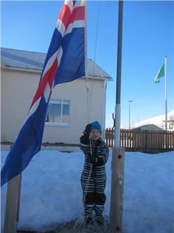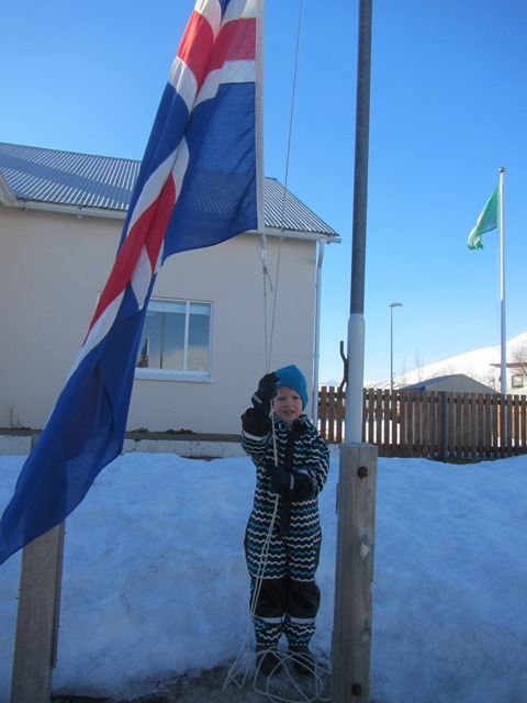 Að því loknu fór hann út og flaggaði fánanum í tilefni dagsins.