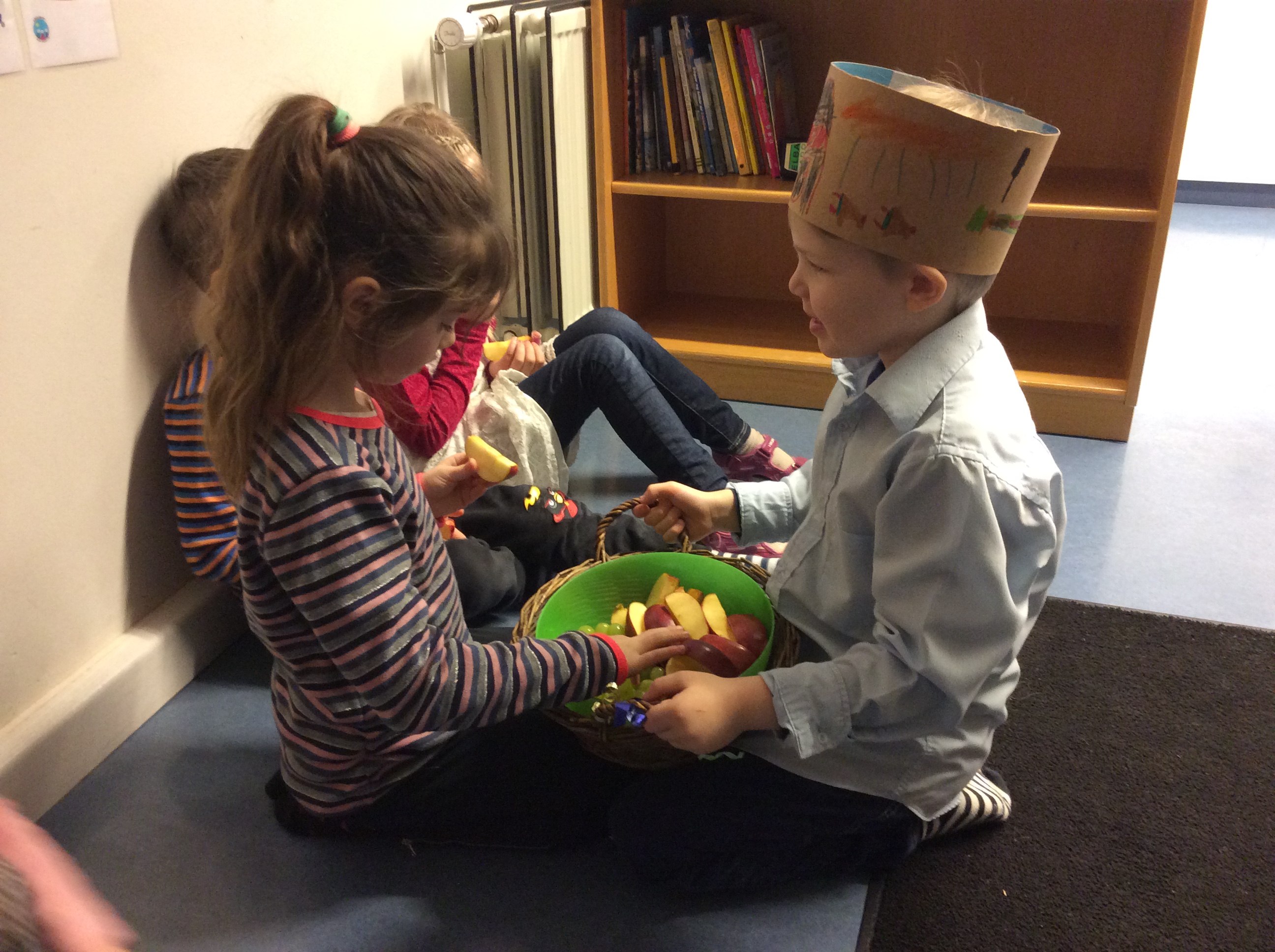 bauð svo öllum í Sólkot upp á ávexti úr afmæliskörfunni.