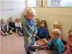 Eftir sönginn bauð Hilmir Þór öllum á Skakkalandi upp á ávexti úr ávaxtakörfunni.