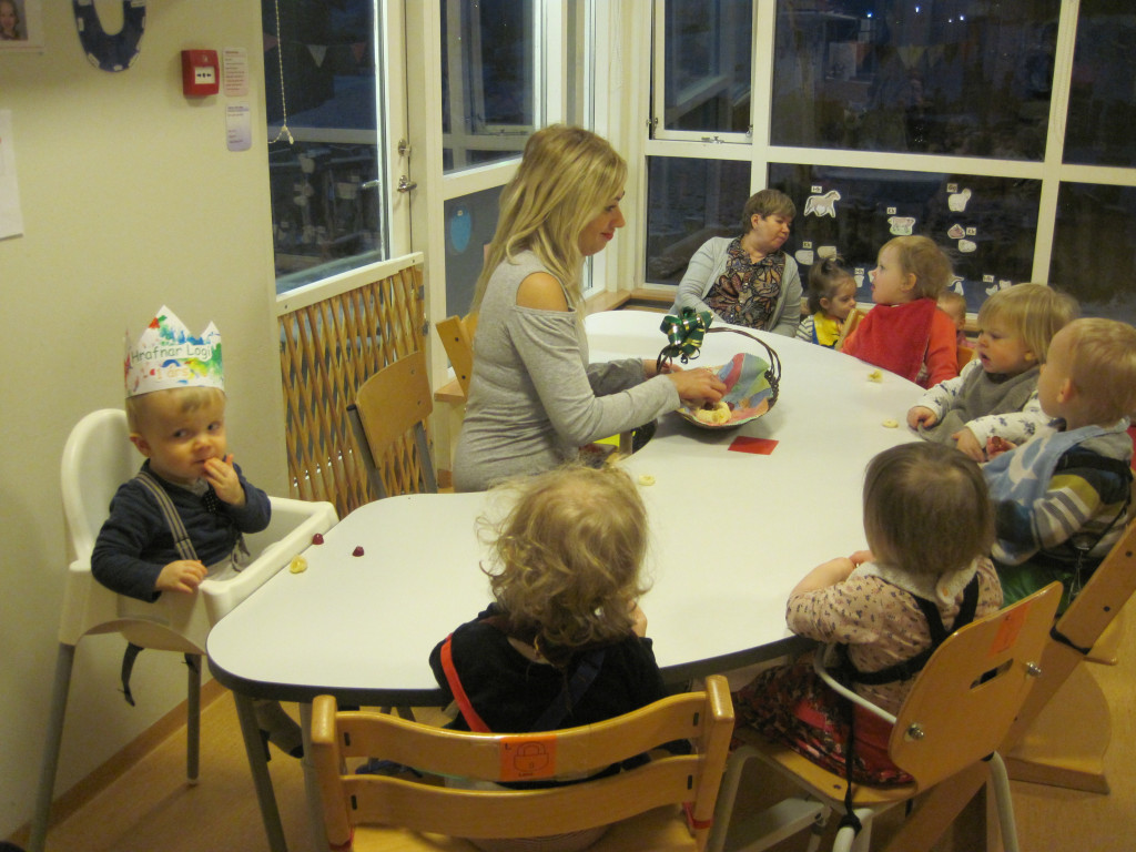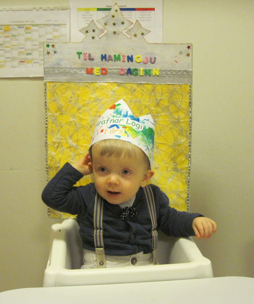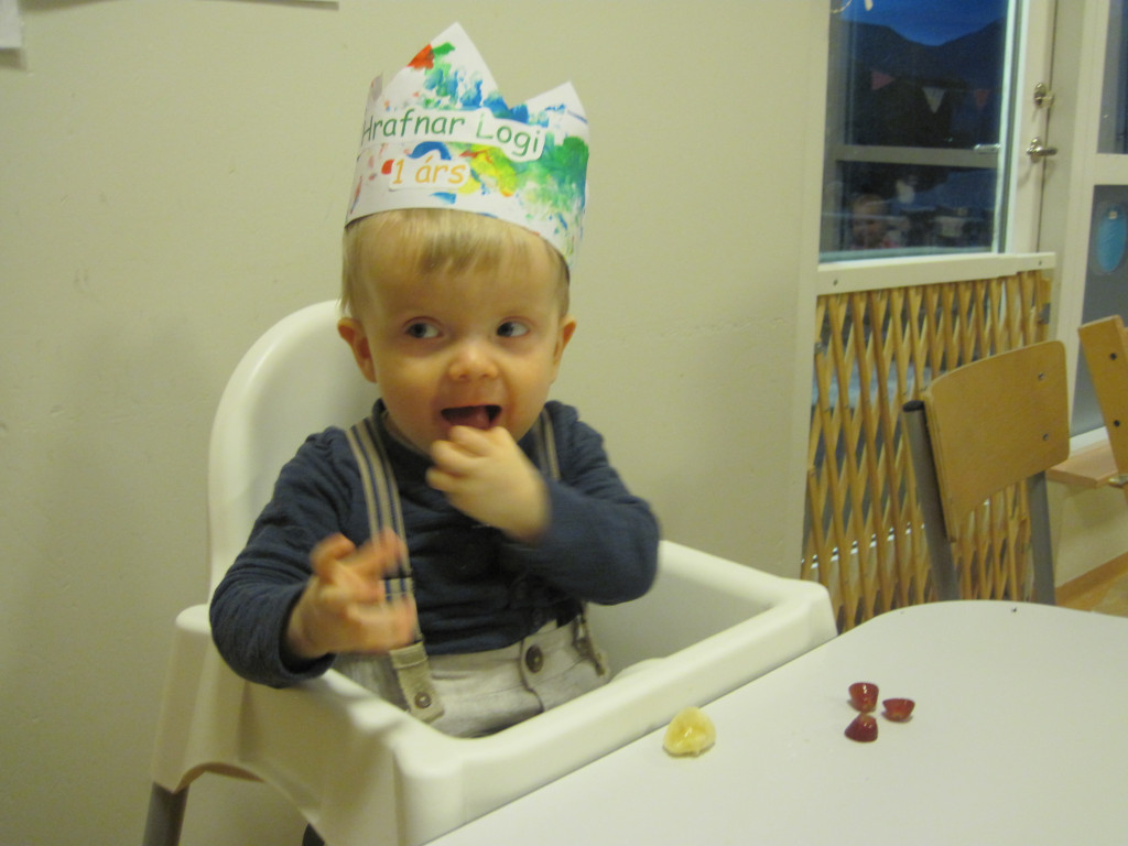 Hrafnar Logi bjó sér til fallega kórónu, í ávaxtastundinni sungum við fyrir hann afmælissönginn. Eftir sönginn fengu svo allir sér ávexti úr ávaxtakörfunni.