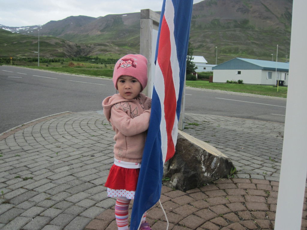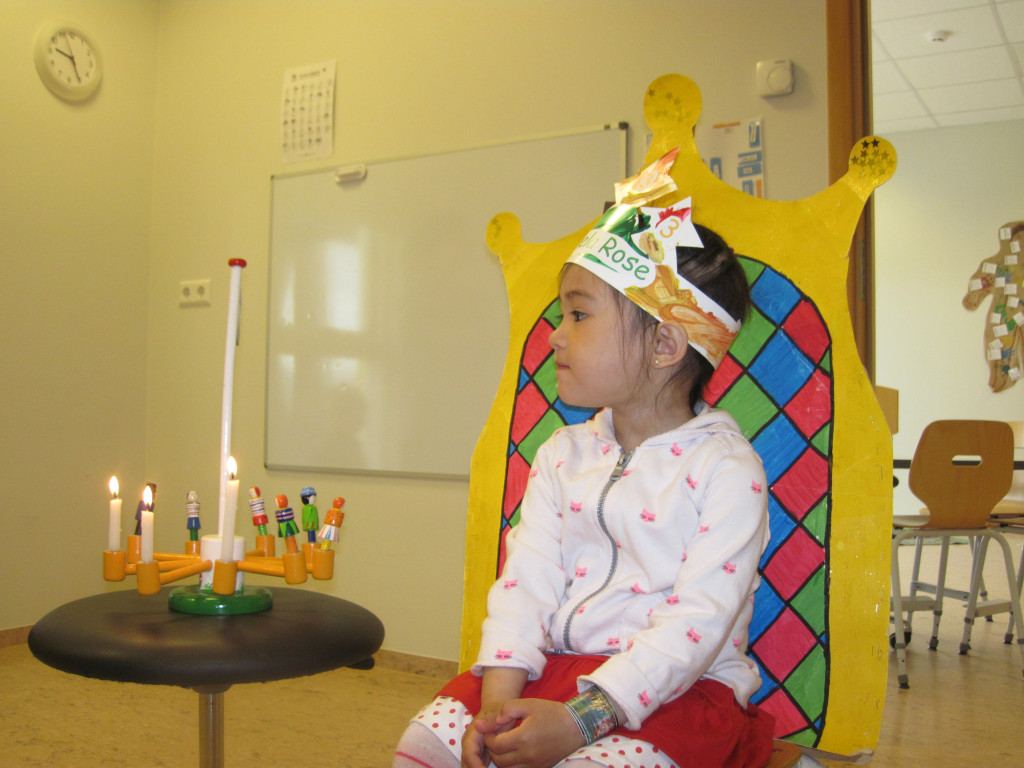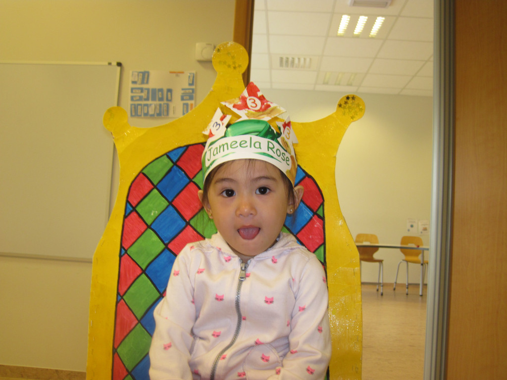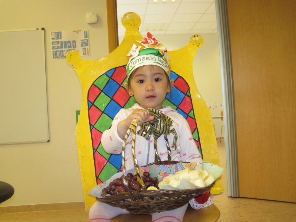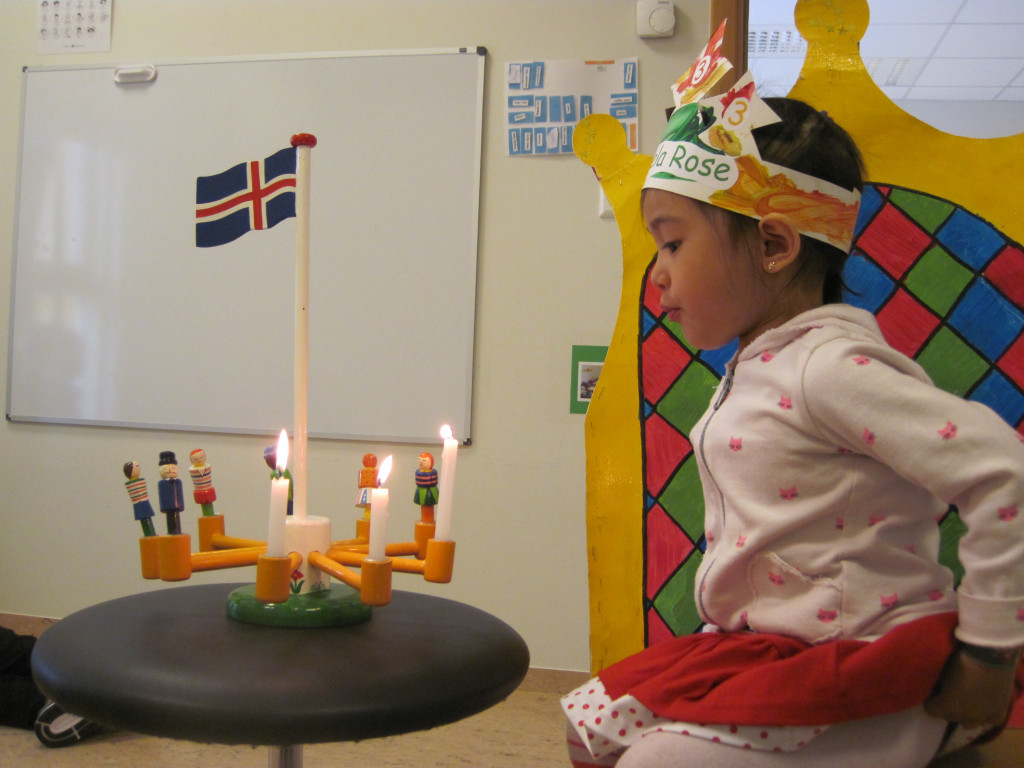 Í dag héldum við upp á 3 ára afmælið hennar Jameelu Rose. Hún bjó sér til fallega kórónu og flaggði íslenska fánanum í tilefni dagsins. Í ávaxtastundinni bauð hún upp á ávexti úr ávaxtakörfunni og við sungum fyrir hana afmælissönginn, hún hefur stækkað í nótt og þetta er afmæliskveðja.