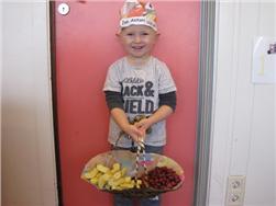 Í ávaxtastundinni sungum við fyrir hann afmælissönginn, hann hefur stækkað í nótt og þetta er afmæliskveðja.