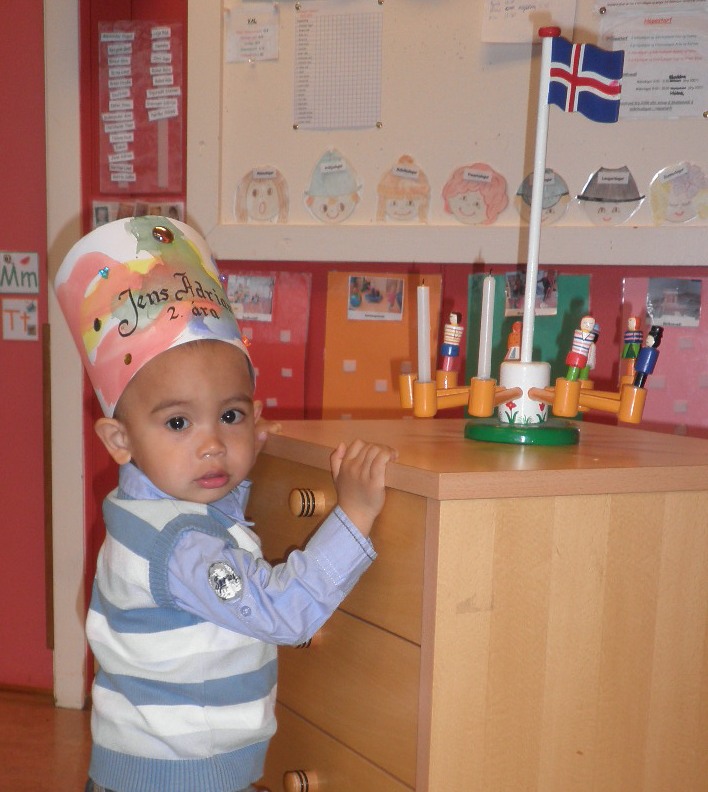 Jens Adrian varð 2 ára í dag þann 15. september. Í tilefni dagsins bjó hann til kórónu, flaggaði íslenska fánanum,