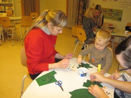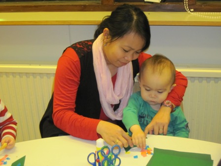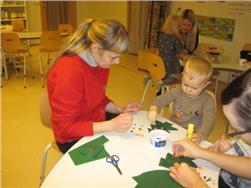 Á þriðjudaginn var jólaföndur á Skakkalandi og foreldrum boðið að koma og búa til jólaskraut með börnunum.