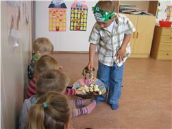 Eftir sönginn bauð Kamil öllum á Hólakoti uppá ávexti úr ávaxtakörfunni.