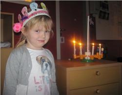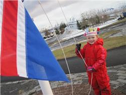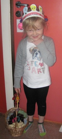 Karítas Lind málaði sér kórónu og flaggaði íslenska fánanum. Í ávaxtastundinni sungum við fyrir hana afmælissönginn og hún blés á kertin fjögur.