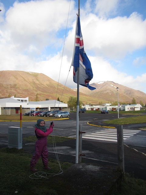Að því loknu fór hún út og flaggaði fánanum í tilefni dagsins.
