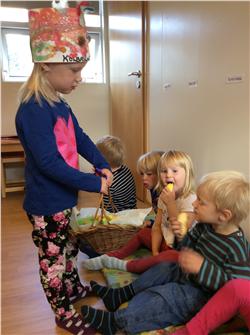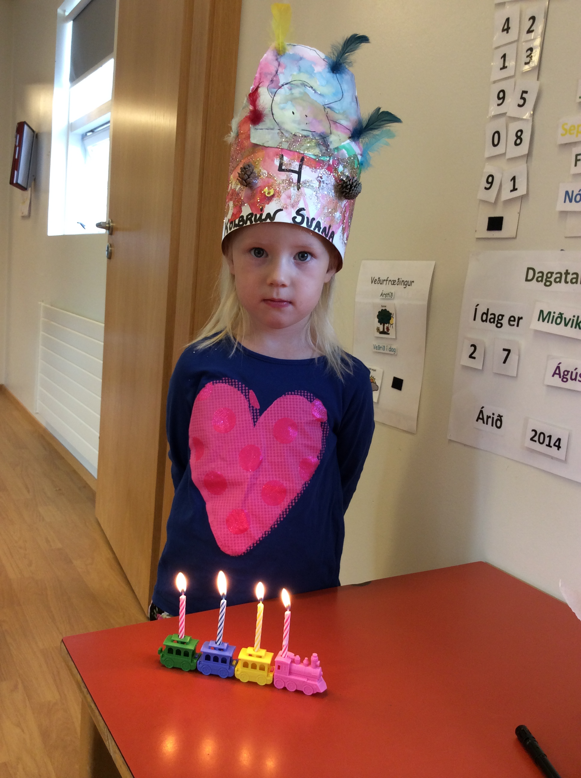 Í ávaxtastundinni sungum við fyrir hana afmælissönginn og eftir